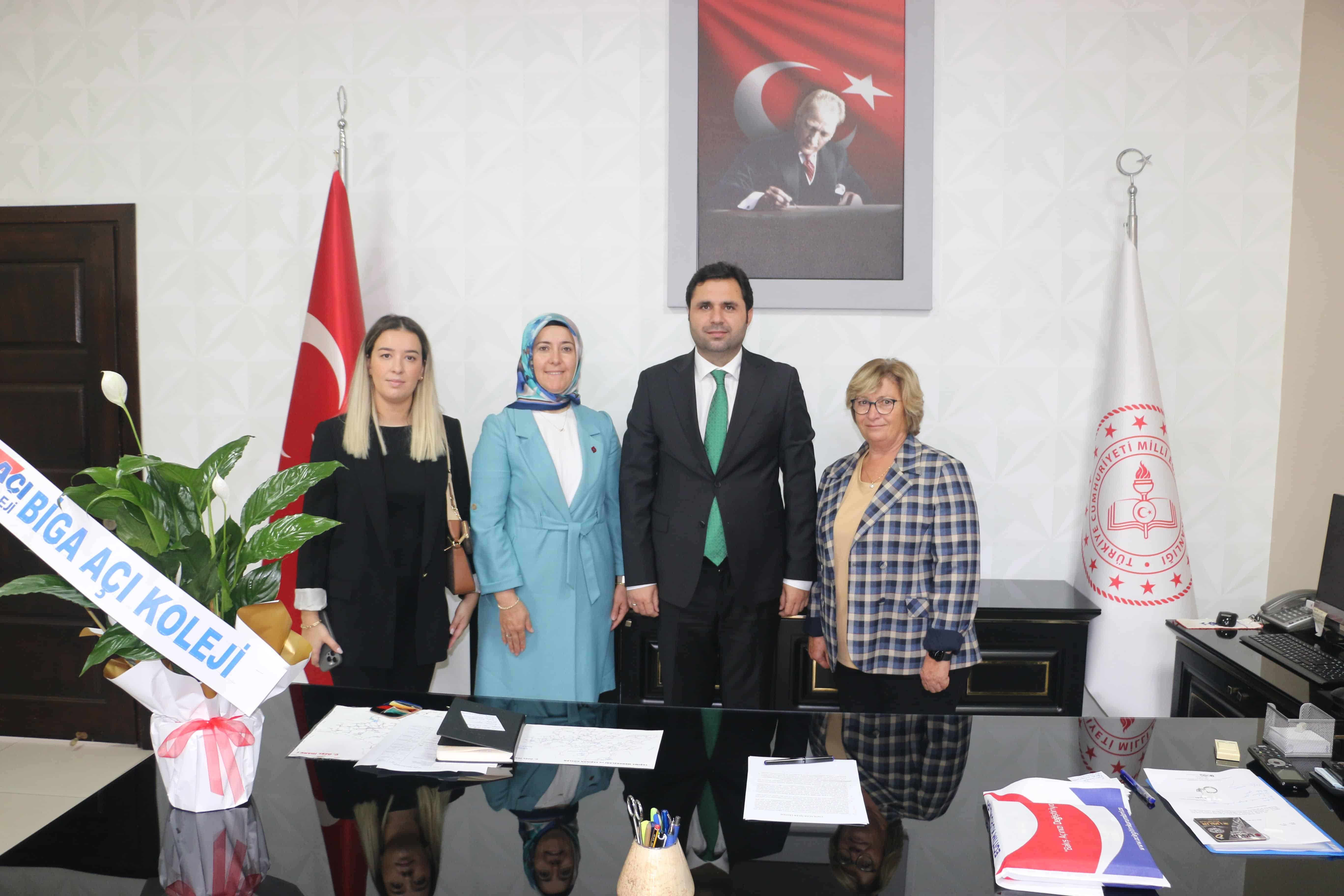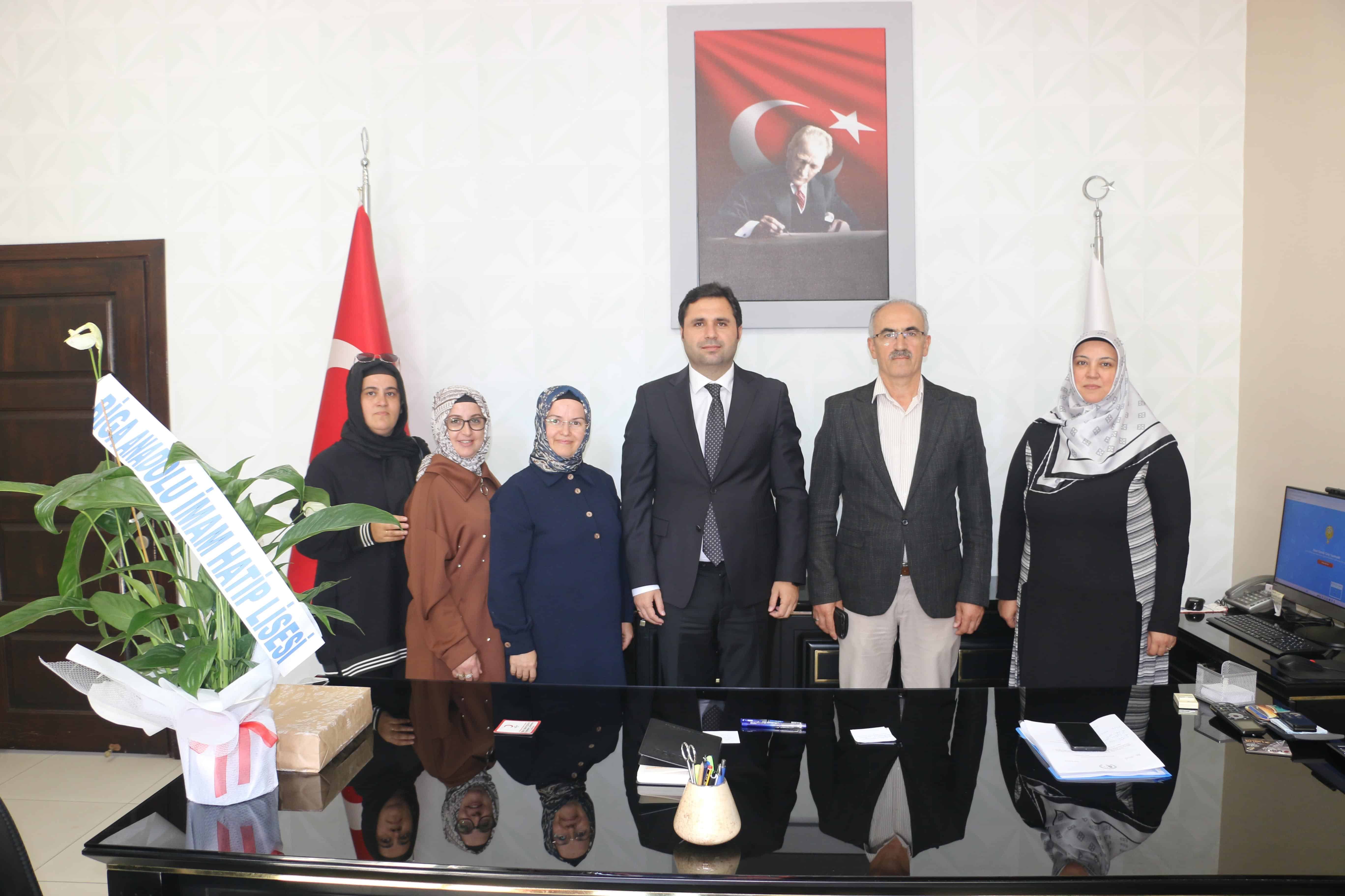Biga Anadolu İmam Hatip Lisesi Okul Aile Birliği Başkanı ve üyeleri beraberinde okul yöneticileri,